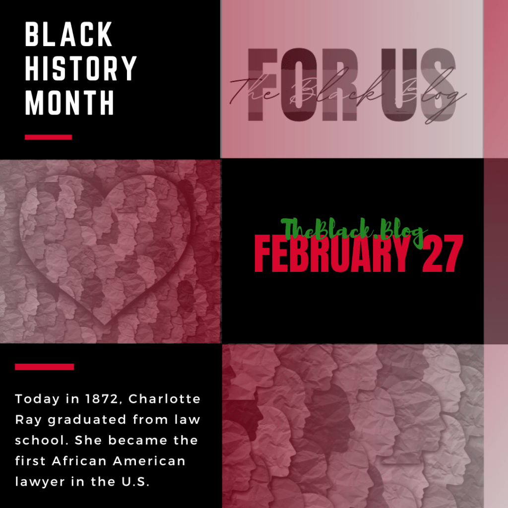 On February 27, 1872, Charlotte Ray, the first female African American lawyer in the United States, graduated from law school.